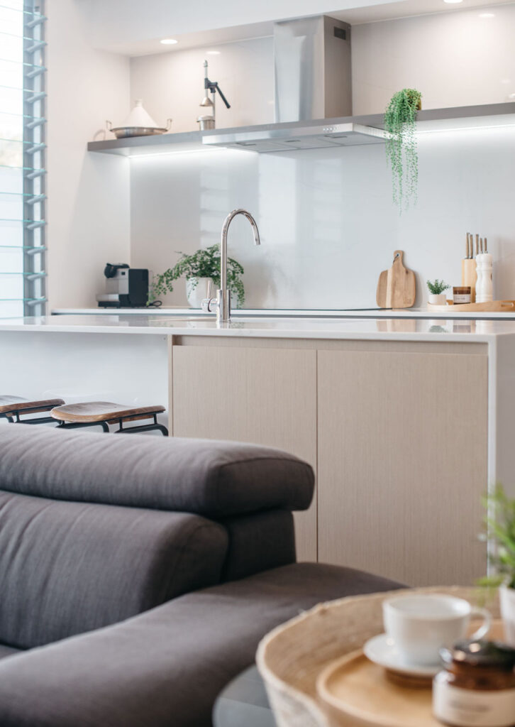 The clients approached the J Co team to create a waterfront terrace home with a point of difference on a small suburban lot. They wanted their dream home to have a timeless feel and not be constrained by current design trends. We engaged the best-suited building designer and worked closely with the designer and client until the perfect plan was created. Elements in the home such as angled walls gave it the feeling of added space and created the desired point of difference. We worked closely with the clients every step of the way to ensure they had a home they loved, accompanying them to showrooms and supplier meetings while also offering guidance and advice through the building, design and selection processes. The clients were kept informed throughout their build with weekly updates and regular on-site meetings.