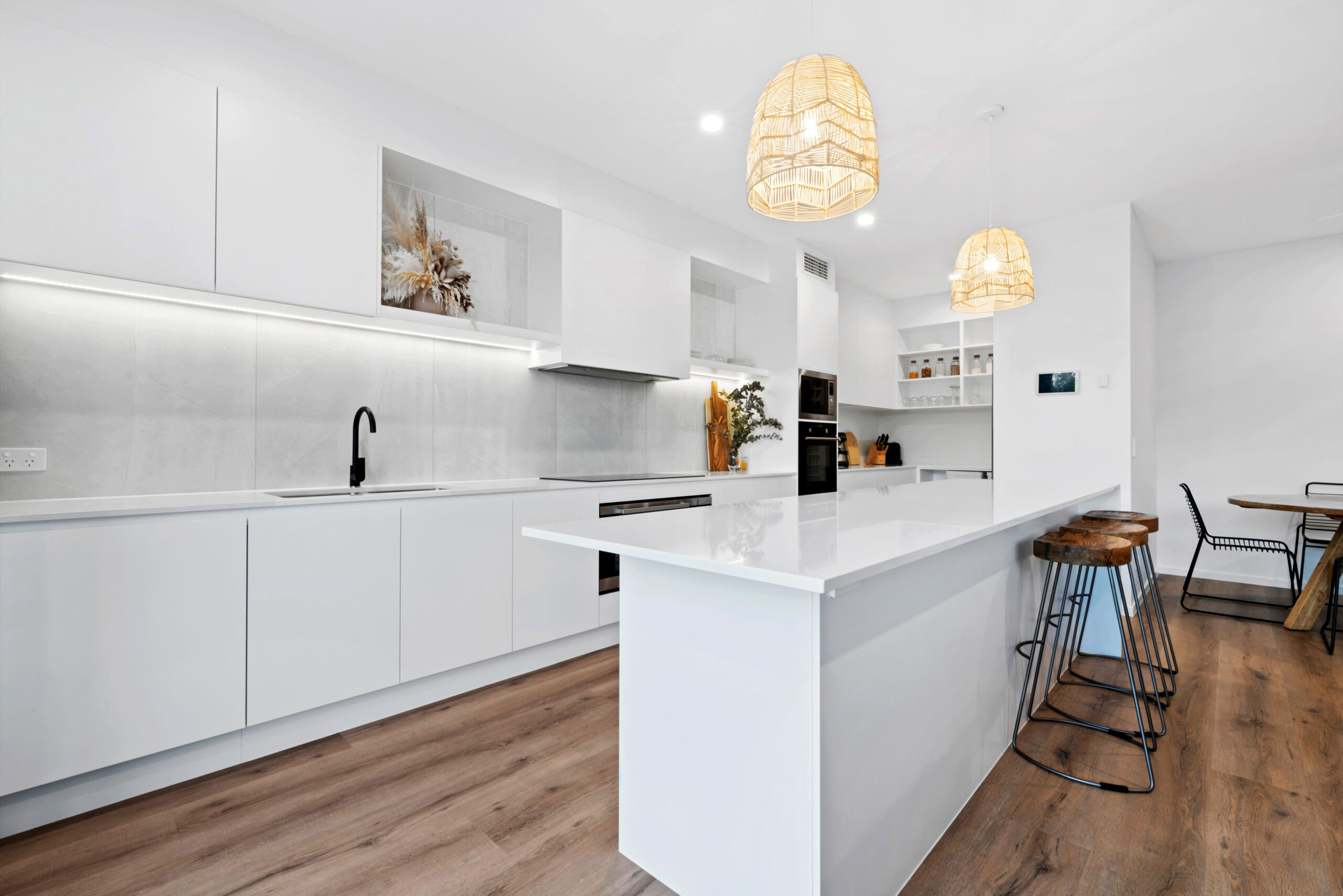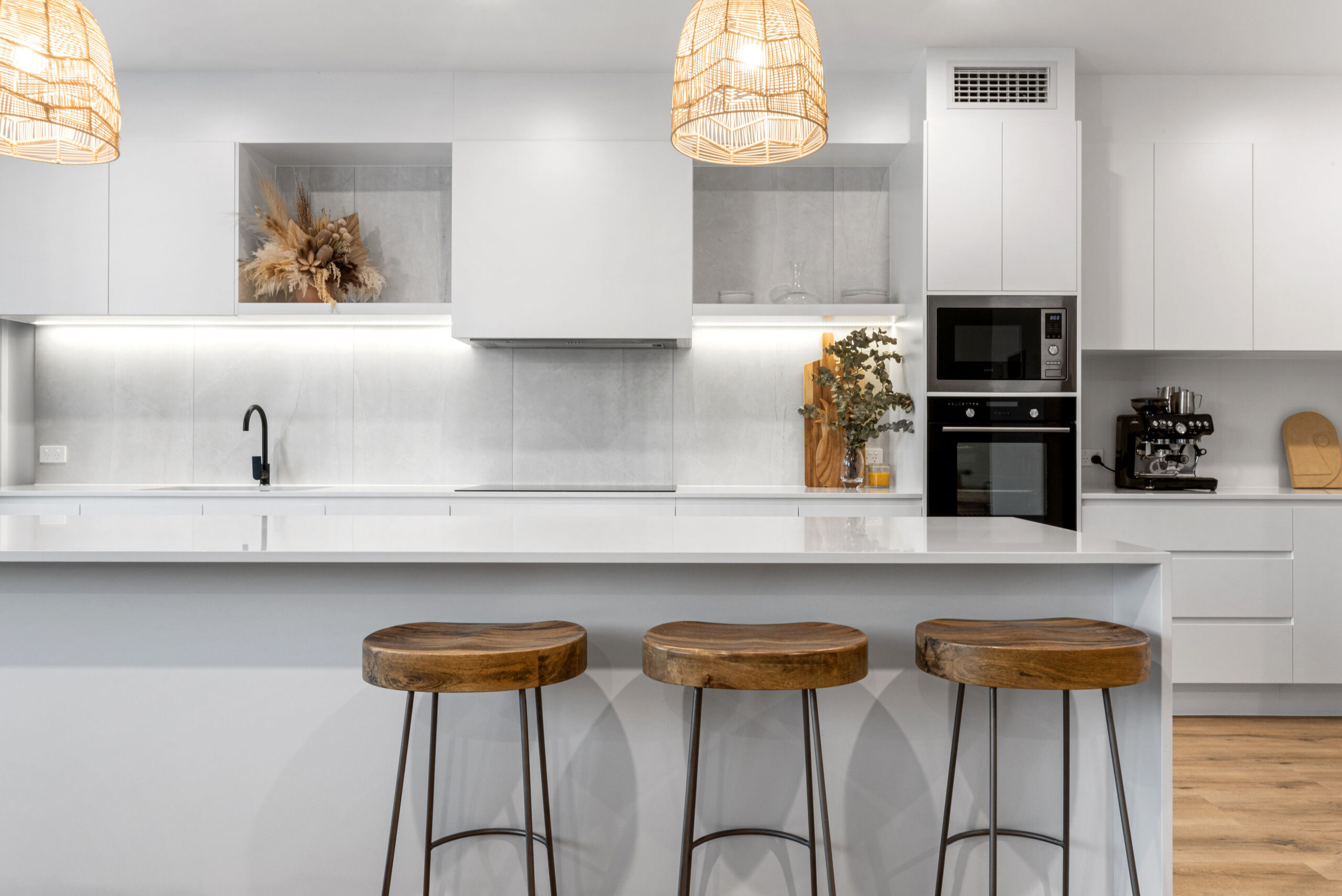 Courtney and Matt’s design brief was to create a light, bright, Palm Springs-inspired home with coastal elements. It was also important to encompass as much of their waterfront views as possible. The J Co team worked closely with the couple to create an eye-catching terrace home that boasted 4 bedrooms with two living areas. Courtney was very active in her design, attending meetings with inspiration from trend-setters like Three Birds Renovations. We provided assistance to ensure her vision came to reality by sourcing the best building designer, working closely with the designer and keeping the clients up to date throughout the entire build process.